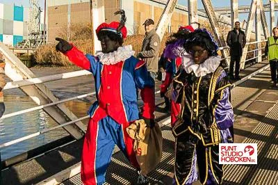 Onder een stralende zon kwam de Sint aan met zijn boot te Hoboken.