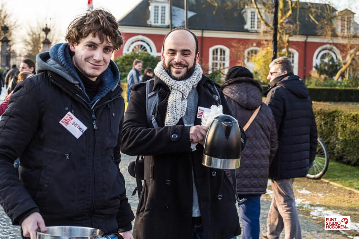 Zondag 13 januari was er naar goede gewoonte de jaarlijkse nieuwjaarsdrink van het district Hoboken voor zijn inwoners. Al heel vroeg was er veel volk dat kwam genieten van Nello & Patrach bier, de lekkere Hobokense pralines en paté, glühwein, warme wafeltjes en chocomelk. De berbertent was in herstelling maar er werd voor een andere tent gezorgd. Hier kon men proeven van de muntthee en koekjes.