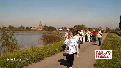 Na een (kleine) speech van Stappaerts Chris, centrumleider van het d.c portugezenhof, zijn de leden van de vier dienstencentra te Hoboken aan hun slotdag begonnen van de tienduizend stappen.